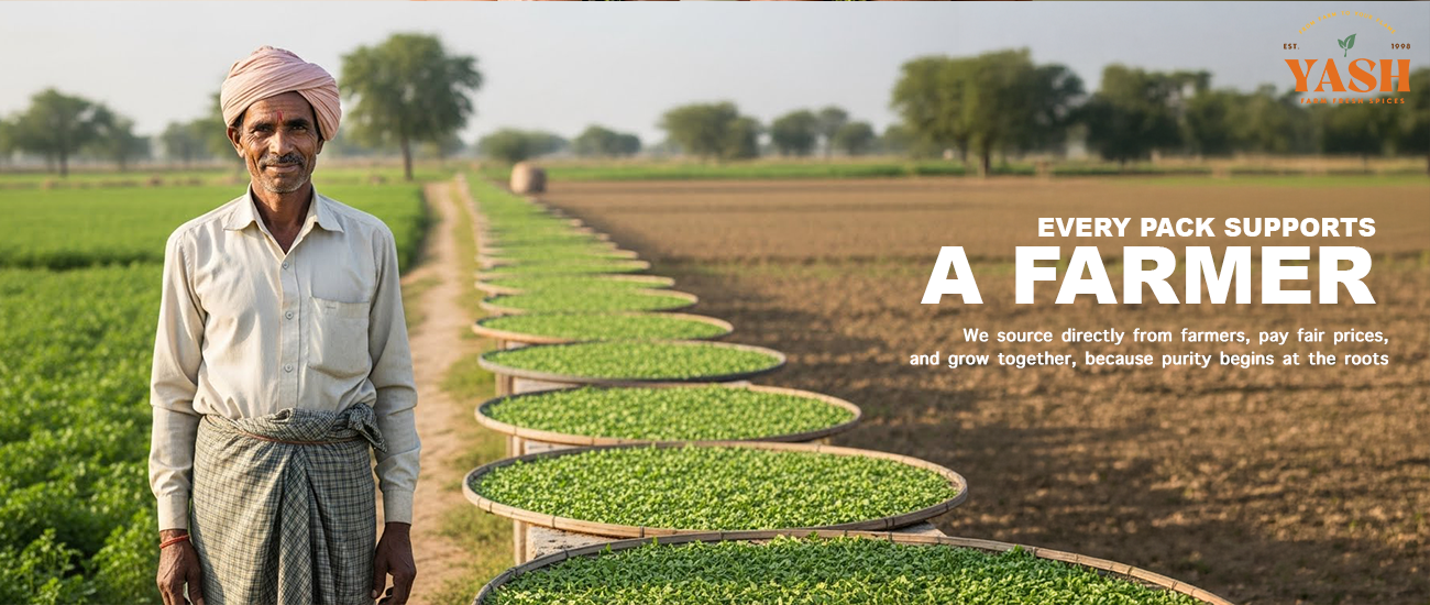 Every Yash Spice begins its journey in the soil, passes through caring hands, and reaches your kitchen with purity and purpose.